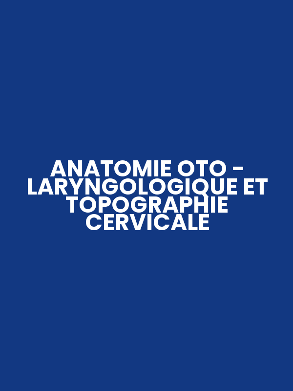 ANATOMIE OTO – LARYNGOLOGIQUE ET TOPOGRAPHIE CERVICALE